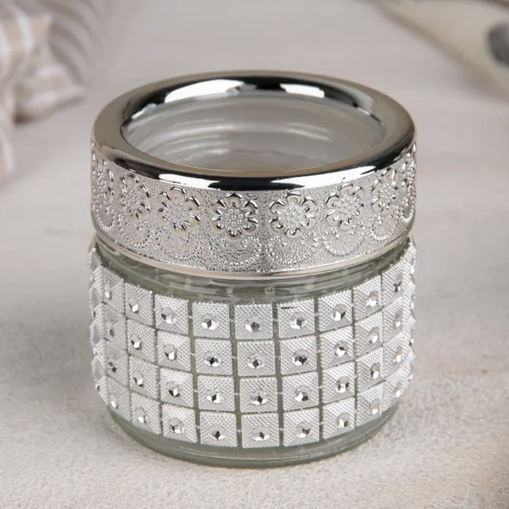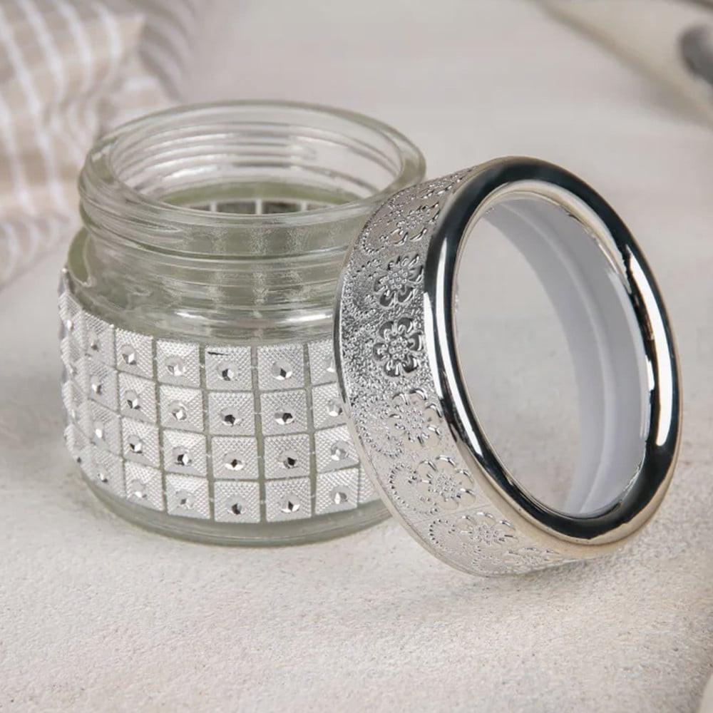 Recipient din sticla Pufo Ellegance pentru zahar, cafea, ceai sau condimente, argintiu