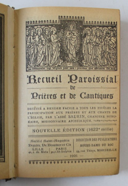 RECUEIL PAROISSIAL DE PRIERES ET DE CANTIQUES , NOUVELLE EDITION , 1921