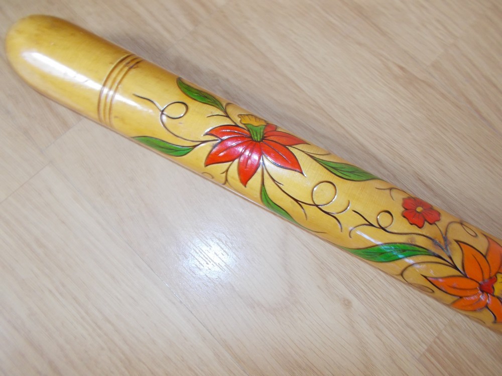 Superb suport din lemn, pentru pastrat andrele, anii 1960-70, incrustat si vopsit manual cu motive florale, nou, nefolosit. Lungime 51 cm, diametru exterior 4 cm, diametru interior 2,8 cm. Pentru plata in cont bancar transportul este gratuit. Vizionati toate produsele mele.