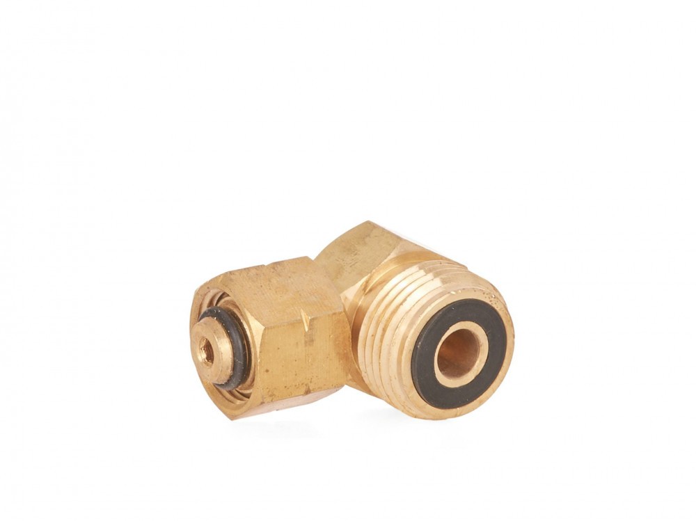 Reductor in unghi pentru o butelie mica de gaz. Reductorul va permite sa conectati un reductor standard cu un filet LH de W21.8" folosit in buteliile mari de gaz la un cilindru mic turistic.. Specificatii tehnice:. Material: alama. Filet de intrare: G 3/8"LH intern. Filet de iesire: L 21,8 LH tata