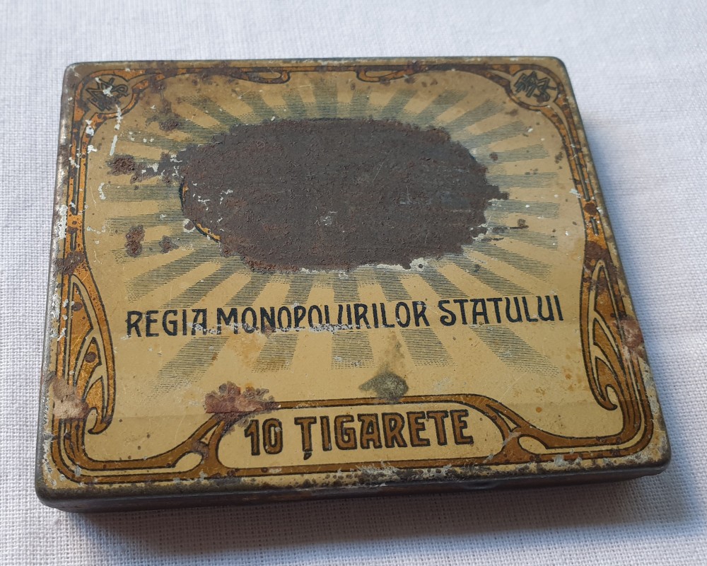 Regia Monopolurilor Statului 10 Tigarete cutie tabla litografiata anii 1930