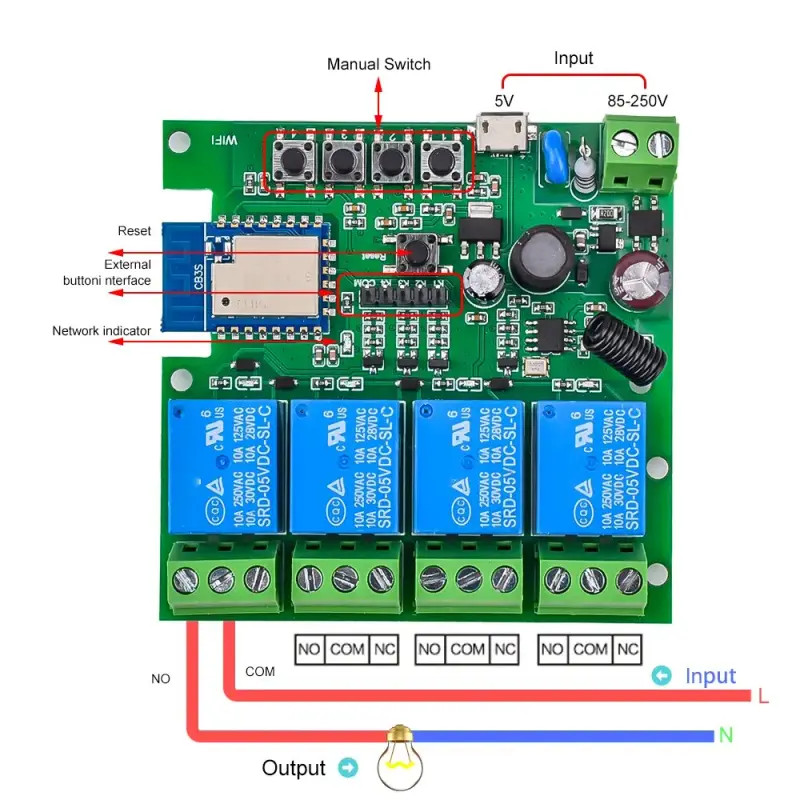 Releu inteligent smart Tuya comutator wifi wireless 4 canale Smart Life 220v