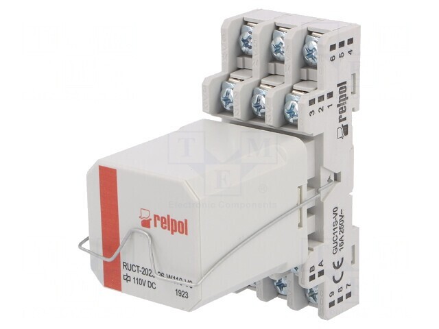 Releul intermediar 3PST-NO cu ubobină de 110VDC 16A/16A/250VAC, PRUCT-2023-26-W110-V0 de la RELPOL este soluția perfectă pentru aplicațiile din industria feroviară. Cu o temperatură de lucru cuprinsă între -40 și 55°C, acest releu este ideal pentru medii cu condiții variate. Montat pe șină DIN, releul are dimensiuni exterioare de 41,5x77,3x84,5mm și poate comuta o putere de 2,5kVA. Configurația pini 3PST-NO asigură o funcționare precisă, iar clasa de inflamabilitate UL94V-0 oferă siguranță sporită. Cu un timp de acționare de 20ms și un timp de descărcare de 15ms, acest releu are o rezistență a pinilor de 100mΩ. Releul este conform cu norma EN 50155 și poate fi utilizat în diverse aplicații din domeniul feroviar.