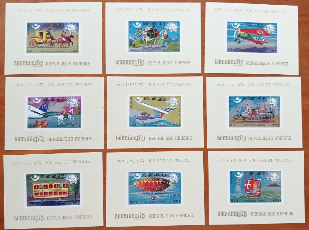 REP. CHMERA-1974-''CENTENAR UPU'' Set complet -9 COLITE de lux-MNH -NESTAMPIL.-VEZI SCAN