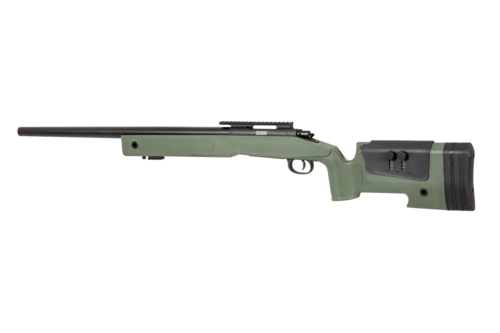 Replica sniper SA-S02 CORE Specna Arms Olive are un mecanism simplu si fiabil de acțiune. Aceasta este manuala, ceea ce inseamna ca replica trebuie reincarcata inainte de fiecare tragere. Replica este fabricata din metal si polimer ranforsat. Piesele din metal includ intregul set de teava externa împreuna cu camera, tragaciul si parghia de armare, precum si sinele RIS si toate elementele de asamblare, cum ar fi suruburile. Corpul cu patul si incarcatorul au fost realizate din polimer ranforsat. Patul are un capac confortabil din cauciuc, a carui grosime poate fi ajustata.