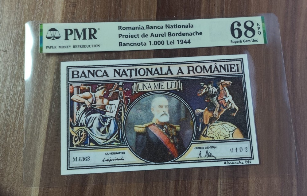REPRODUCERE pe hartie cu filigran si fire UV proiect bancnota 1000 lei 1944