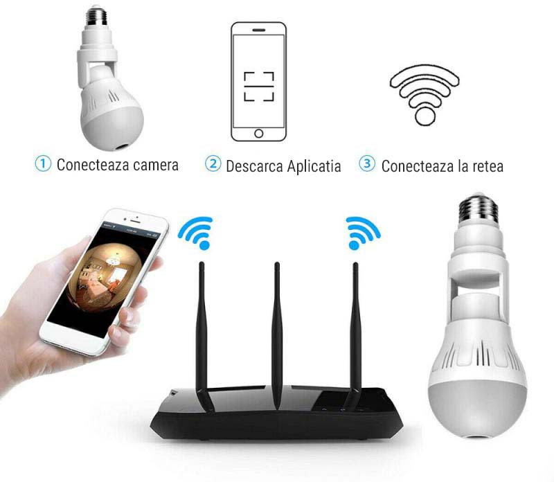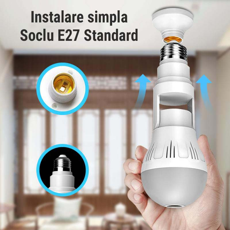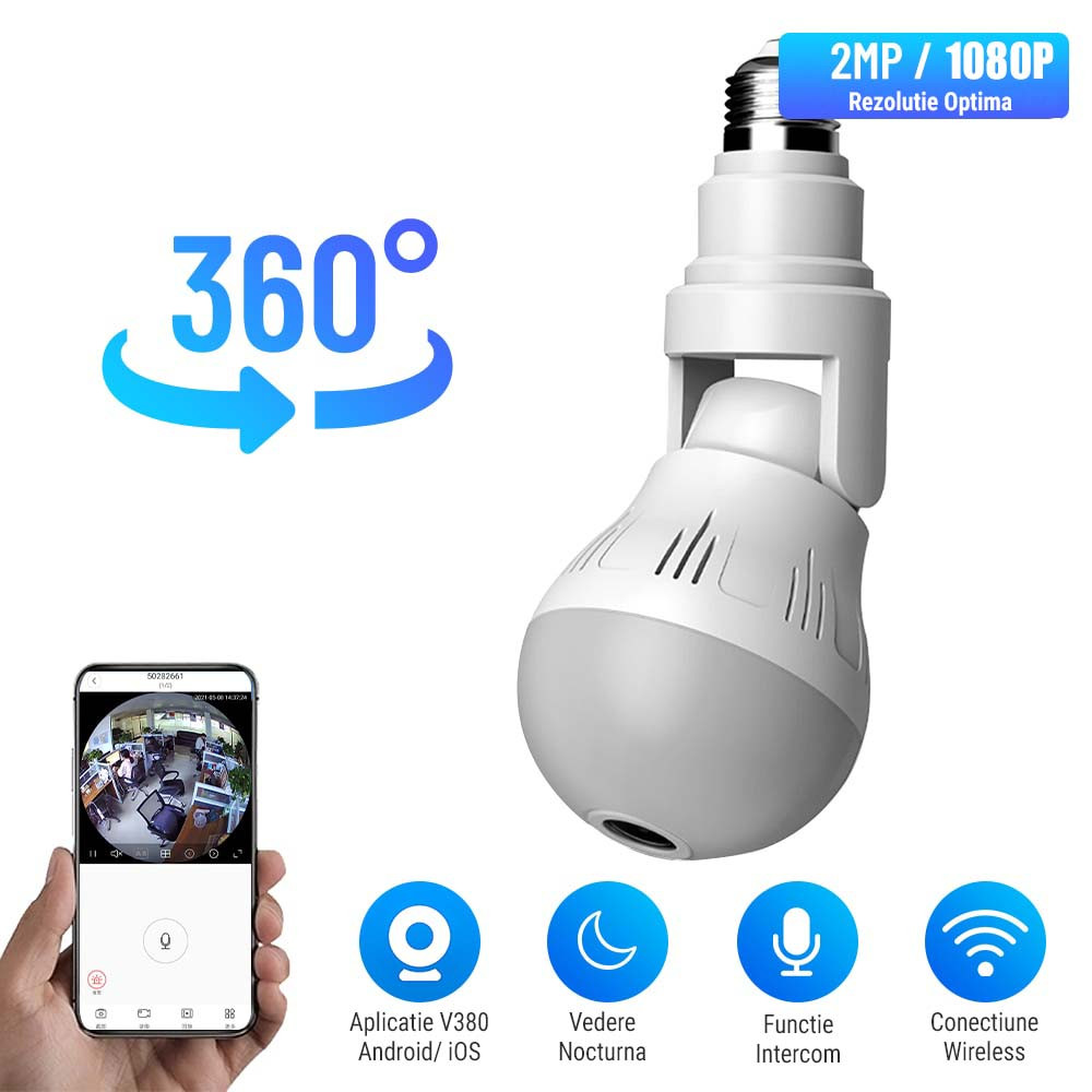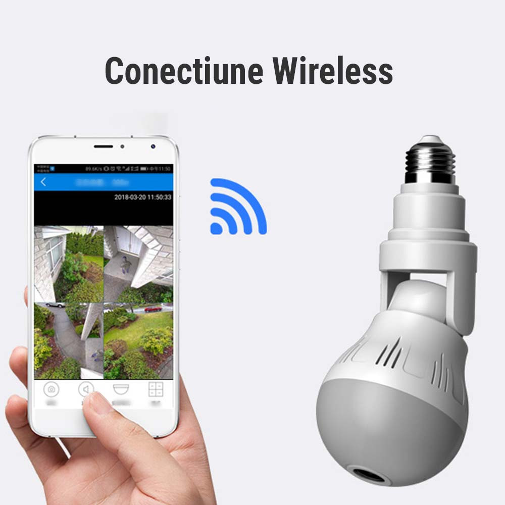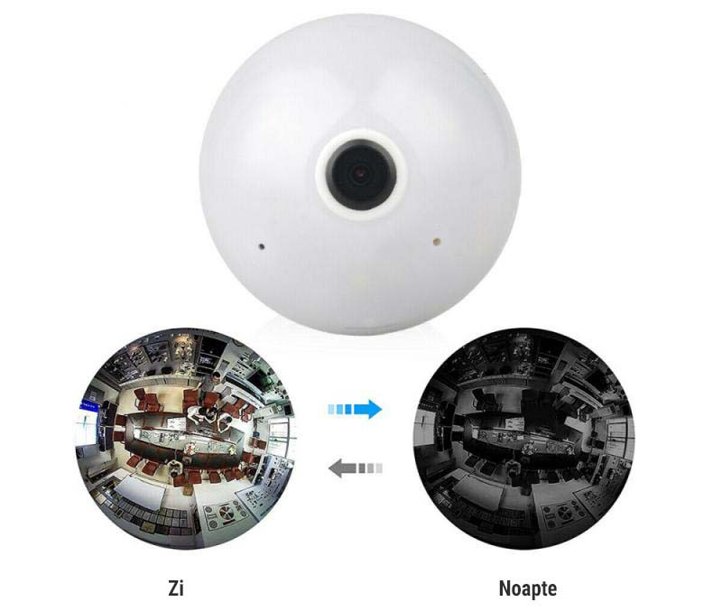 • Camera panoramica 360°: HD 1080P LED bec fara fir de 360 de grade, camera panoramica fara zona oarba, ceea ce ii poate oferi o acoperire buna a intregii camere pentru a monitoriza fiecare colt al casei si biroului dvs, un monitor bun pentru a va proteja lucrurile importante, copilul sau animalul de companie atunci cand sunteti departe de casa.