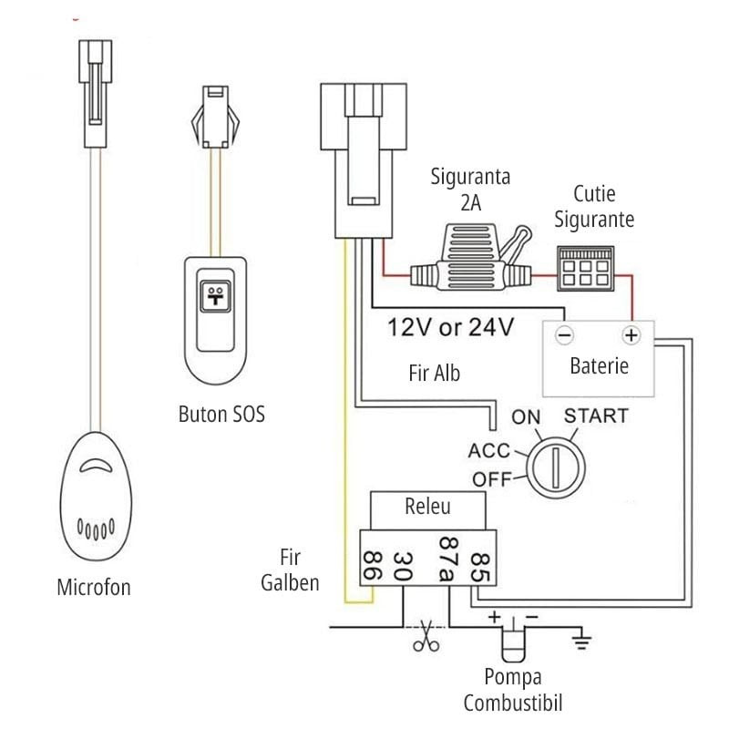 - Releu pentru activarea/dezactivarea pompei de alimentare a masinii