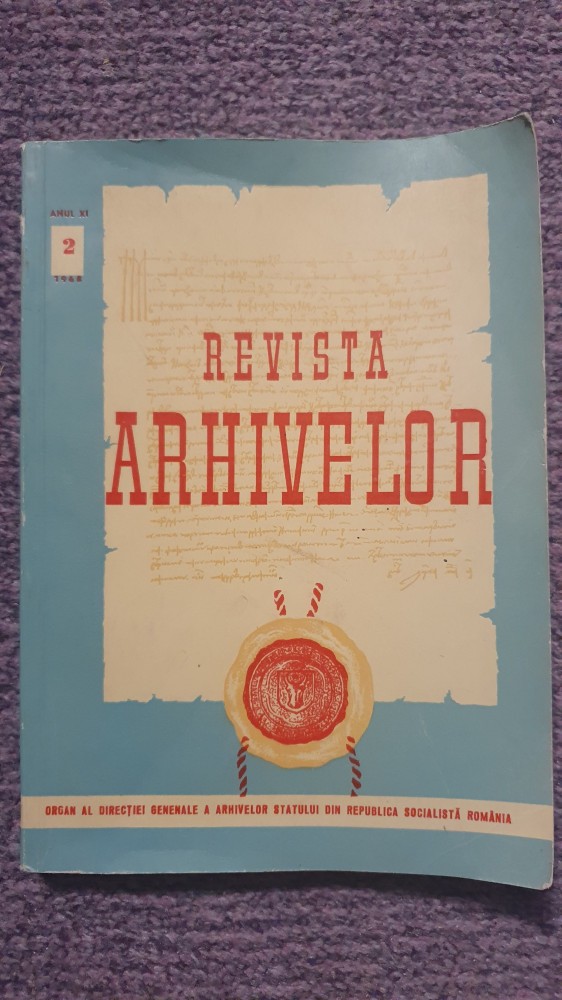 Revista arhivelor, nr 2 anul XI, 1968, 270 pagini, stare buna