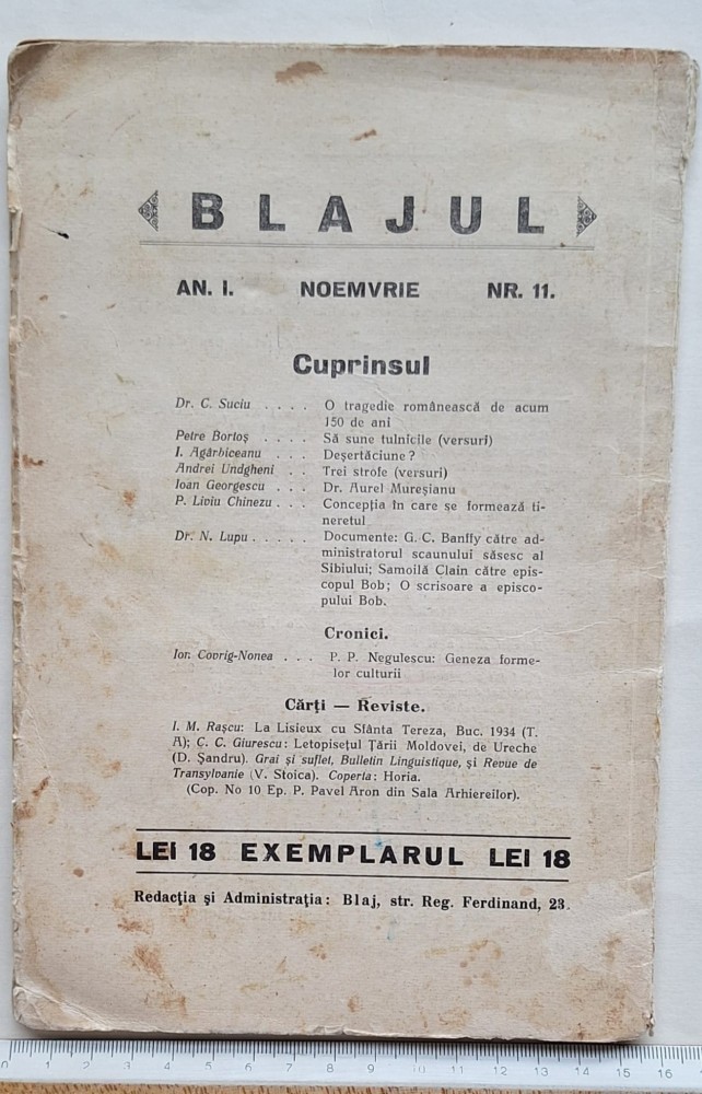 Revista „Blajul” – Anul I, Nr. 11, Noiembrie 1934 – Agârbiceanu, Giurescu