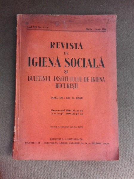 Revista de igiena sociala nr.5-6/1944 si buletinul institutului de igiena Bucuresti