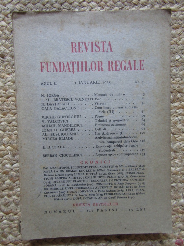 Revista Fundatiilor Regale - Anul II 1 Ianuarie 1935 Nr. 1, cu un articol de Mircea Eliade Activitatea Institutului de Cultura Comparata de la Oslo
