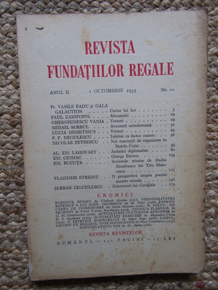Revista Fundatiilor Regale - Anul II 1 OCTOMBRIE 1935 Nr. 10
