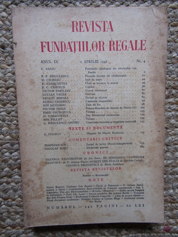 Revista Fundatiilor Regale - Anul IX 1APRILIE 1942 Nr. 4