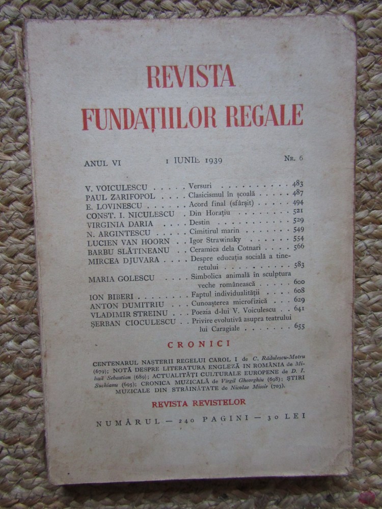 Revista Fundatiilor Regale - Anul VI 1 IUNIE 1939 Nr. 6