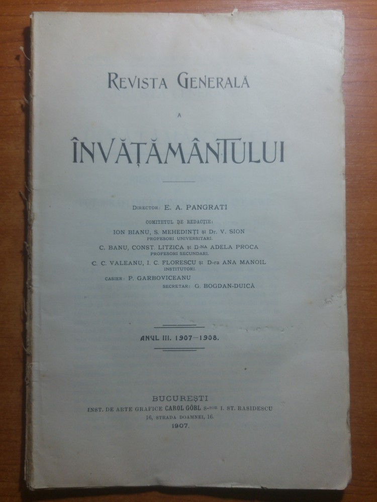 revista generala a invatamantului 1 iunie 1907-director emil pangrati