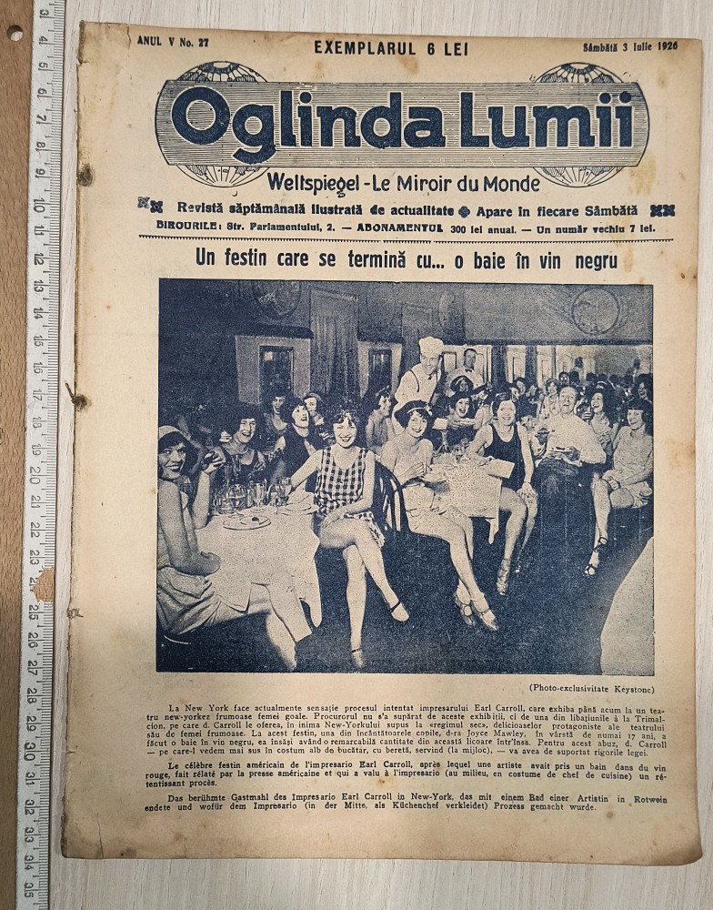 REVISTA OGLINDA LUMII 3 IULIE 1926 , BOGAT ILUSTRATA