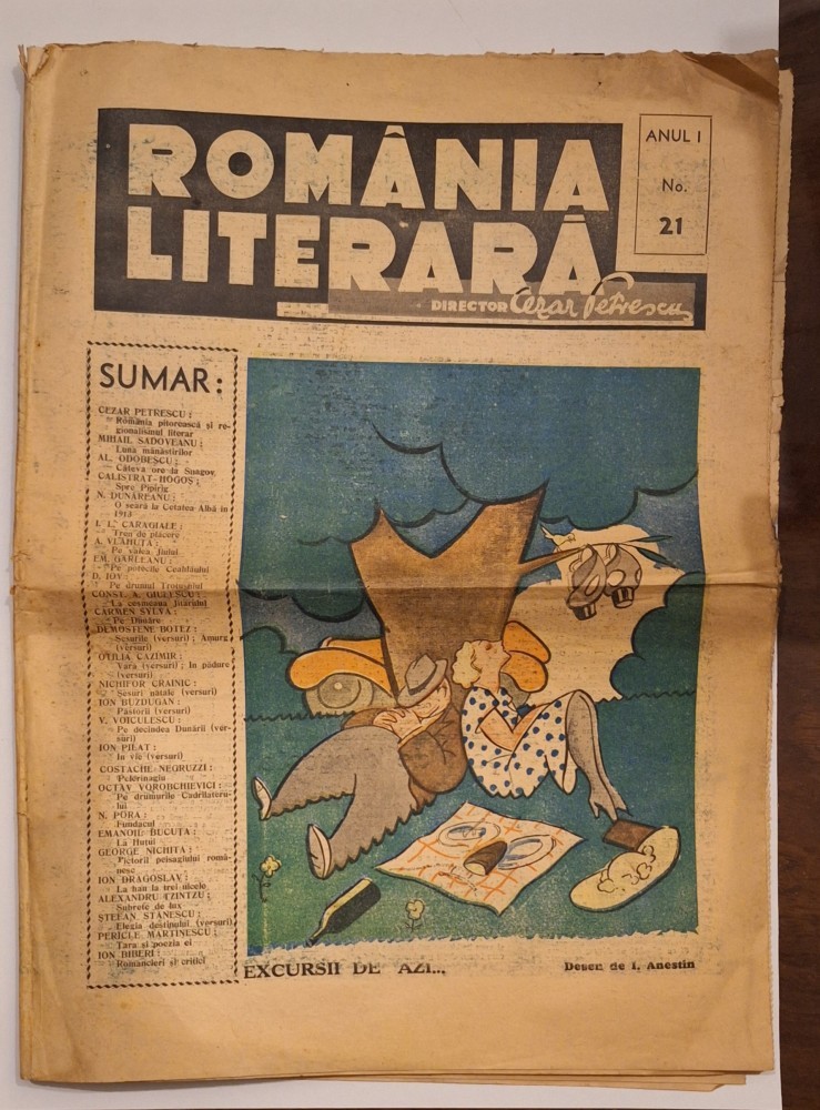 Revista România Literară (Anul I, Nr. 21 / 1939) – Cezar Petrescu, Caragiale, Sadoveanu, copertă Ion Anestin