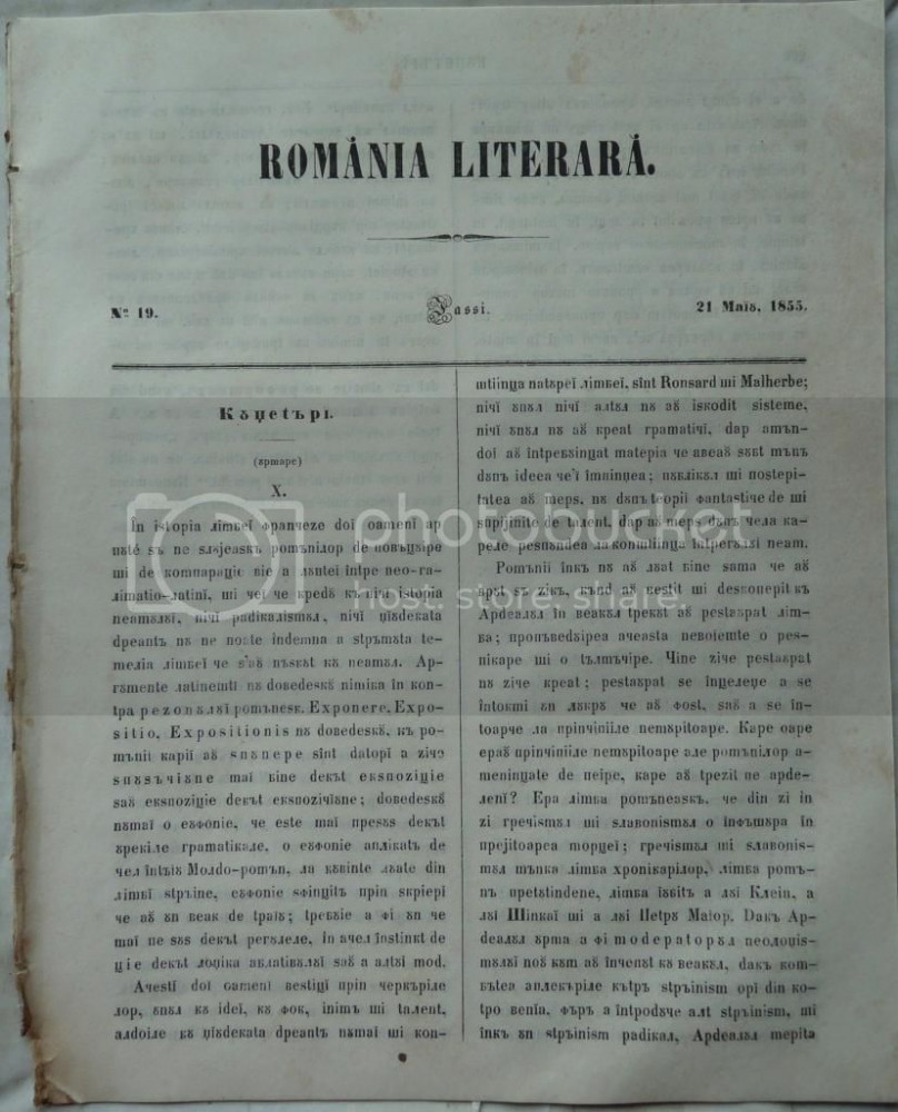 Revista Romania literara ; Director Vasile Alecsandri , nr. 19 , 1855