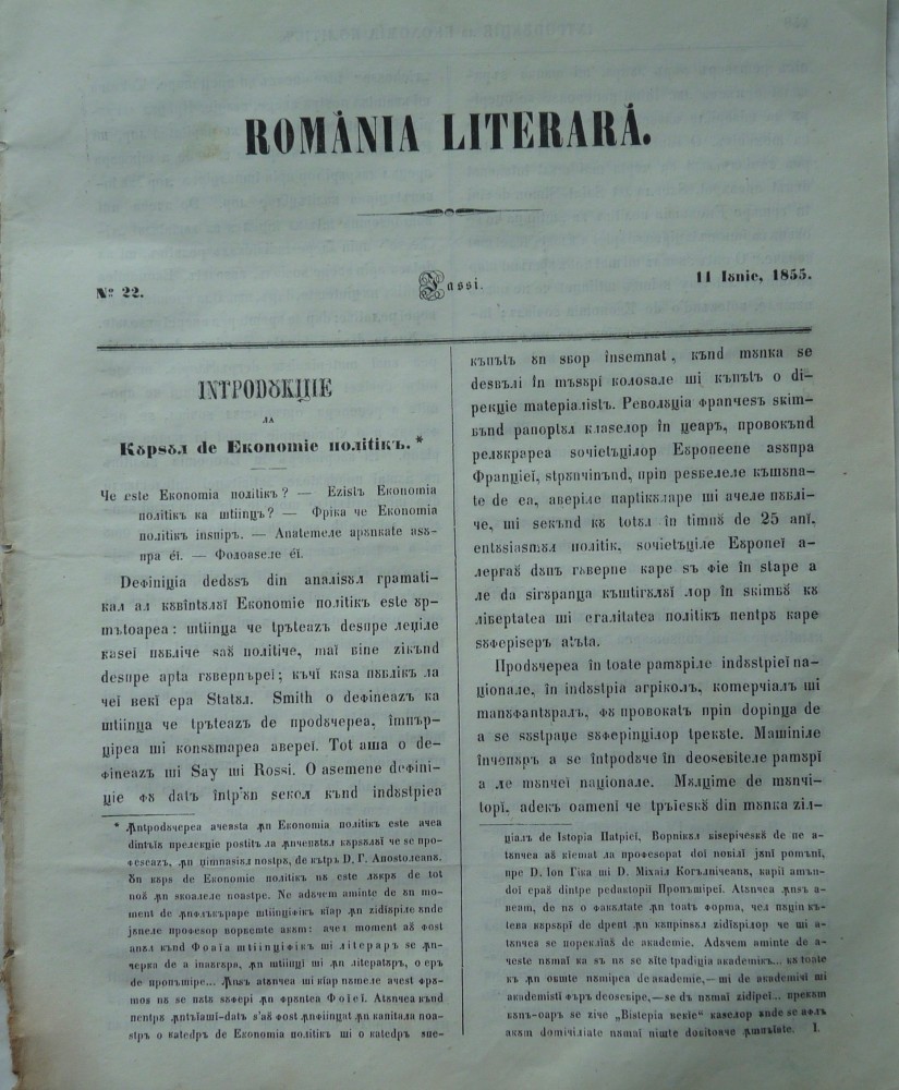 Revista Romania literara ; Director Vasile Alecsandri , nr. 22 , 1855