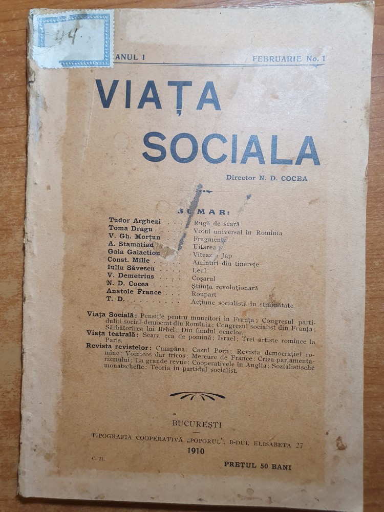 revista viata sociala februarie 1910- anul 1,nr. 1 -tudor arghezi,gala galaction