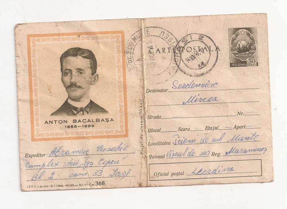 RF26 -Carte Postala- Anton Bacalbasa, circulata 1966 ATENTIE :