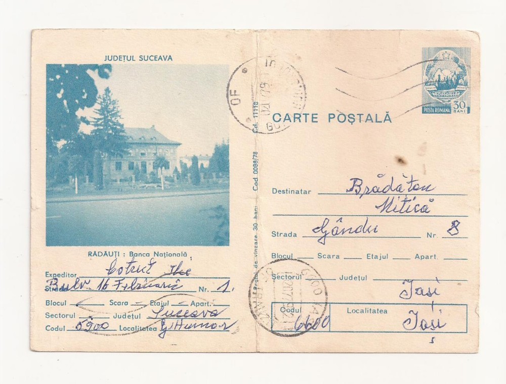 RF26 -Carte Postala- Radauti, Banca Nationala, circulata 1979