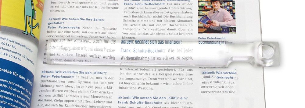 SAFE 9807 Rigla de citire cu marire de pana la 12x Lupa tip rigla ideal pentru citit. Lentila lunga de citit are o marire de 2.5x O lentila incastrata in maner cu o marire de 12x. Dimensiuni: 165 x 20 x 10 mm.
