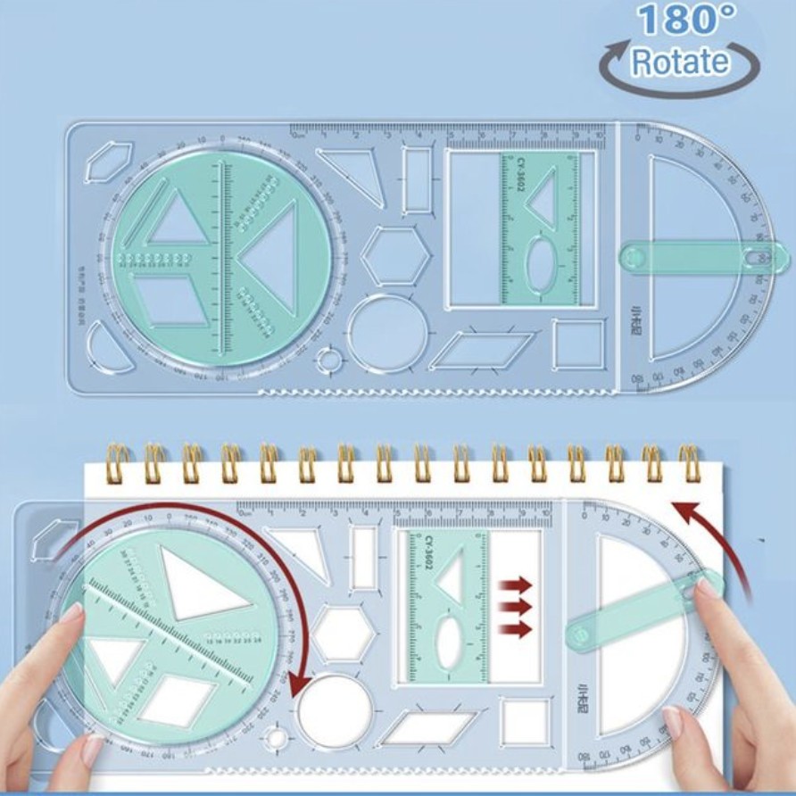1. Măsurare precisă: Rigla geometrică multifuncțională este echipată cu scale și mărci care permit măsurarea lungimilor și distanțelor cu o precizie mare. Aceasta poate fi folosită pentru a lua măsurători directe pe hârtie sau alte suprafețe plane.