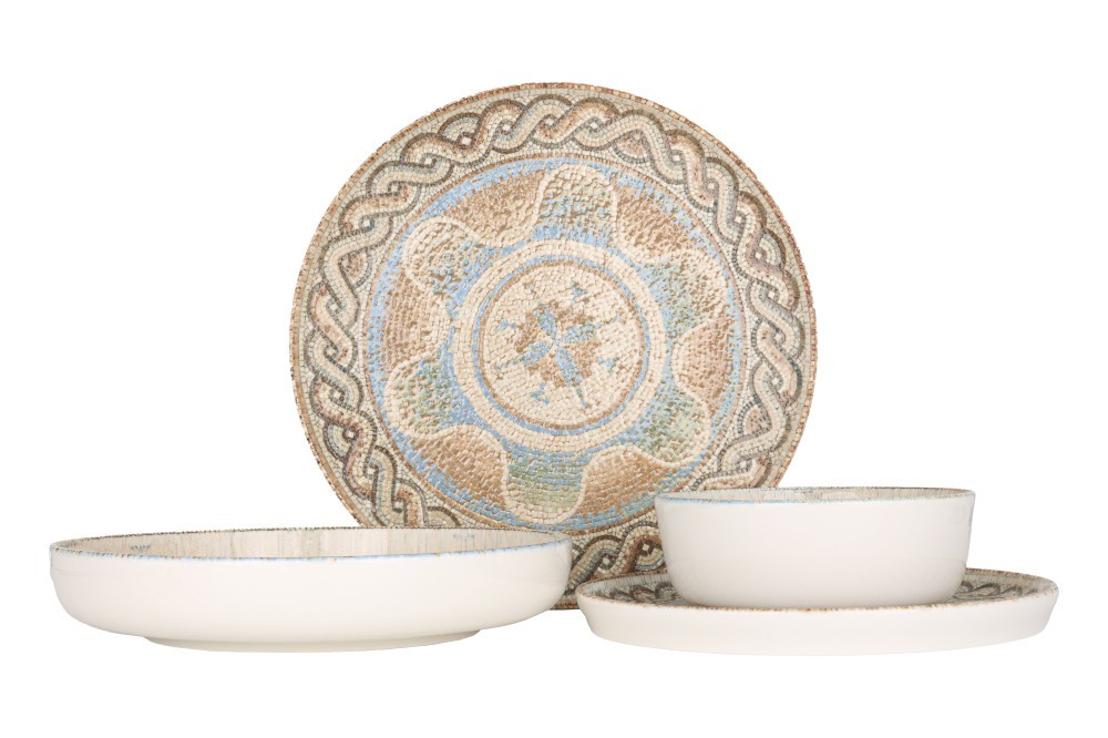 Rinart Set de vesela (Medium) - Celest - 24 bucăți - 6 persoane - Porţelan