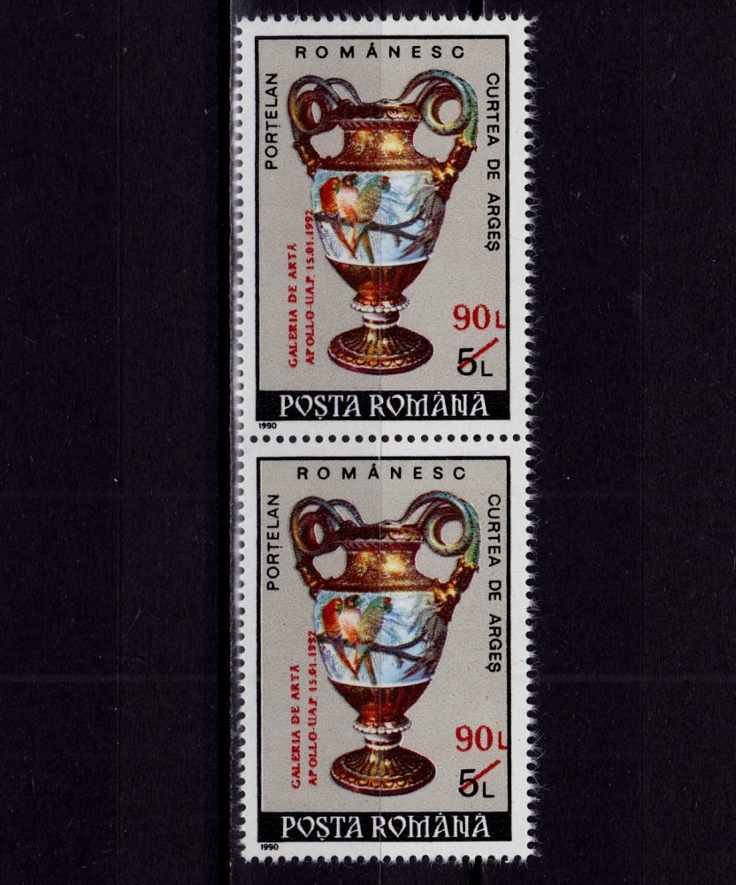 RO 1992 LP 1280 "Galeria de arta Apollo - supratipar",pereche (V sau H !) ,MNH