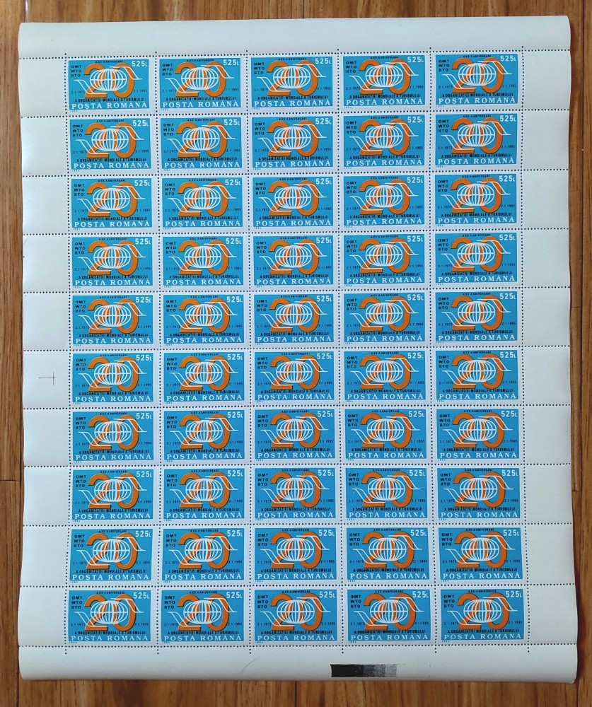 ✅ RO 1994 LP 1365 "A XX-a aniversare a Org. Mond. A Turismului", serie coala de 50 de serii ,MNH