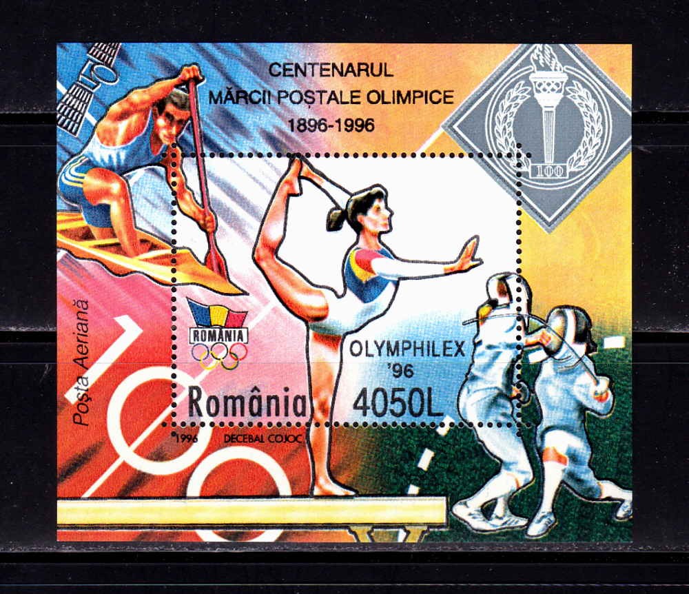 ✅RO 1996 ,LP 1417 "Centenarul marcilor postale olimpice" , colita 302 , MNH