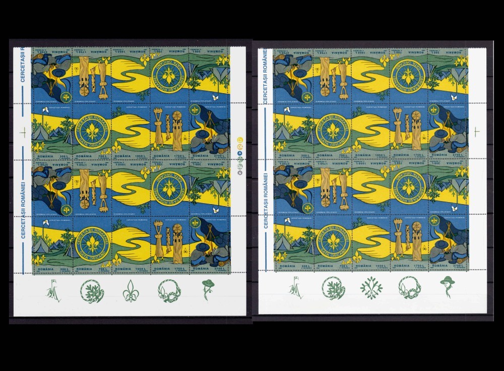 ✅RO 1997 ,LP 1442 b ," Cercetasii Romaniei ", perechi de blocuri de 4 serii , cate doua perechi tete-beche , ambele tipuri de viniete, MNH