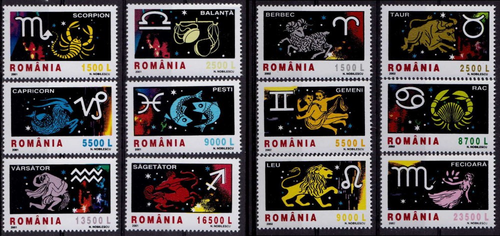 RO 2001/2002 LP 1574+1576 "Semnele zodiacului" I + II serie , MNH