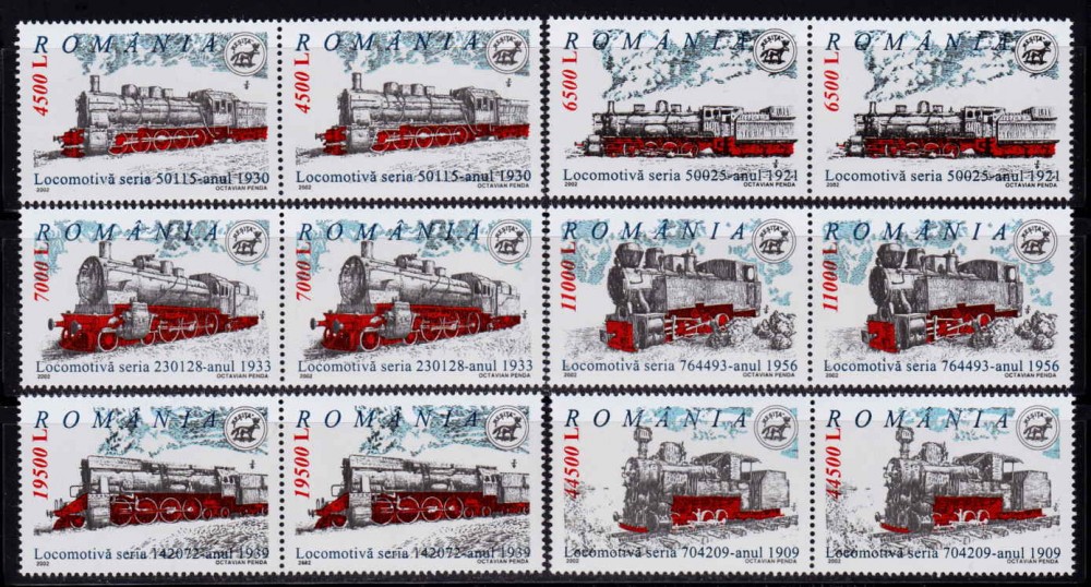 ✅RO 2002 LP 1592 " Locomotive romanesti cu abur" , serie perechi H , MNH