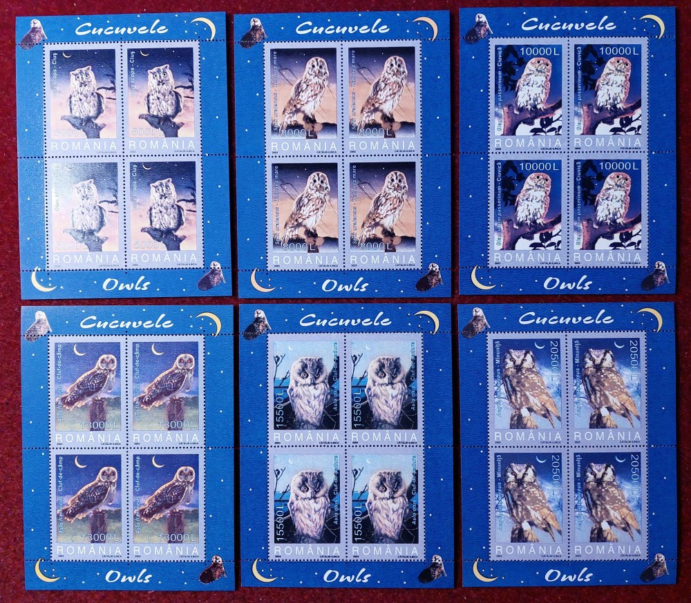 RO 2003 ,LP 1610 a , "Cucuvele " serie de 6 valori ,in coli mici de 4 ,MNH .