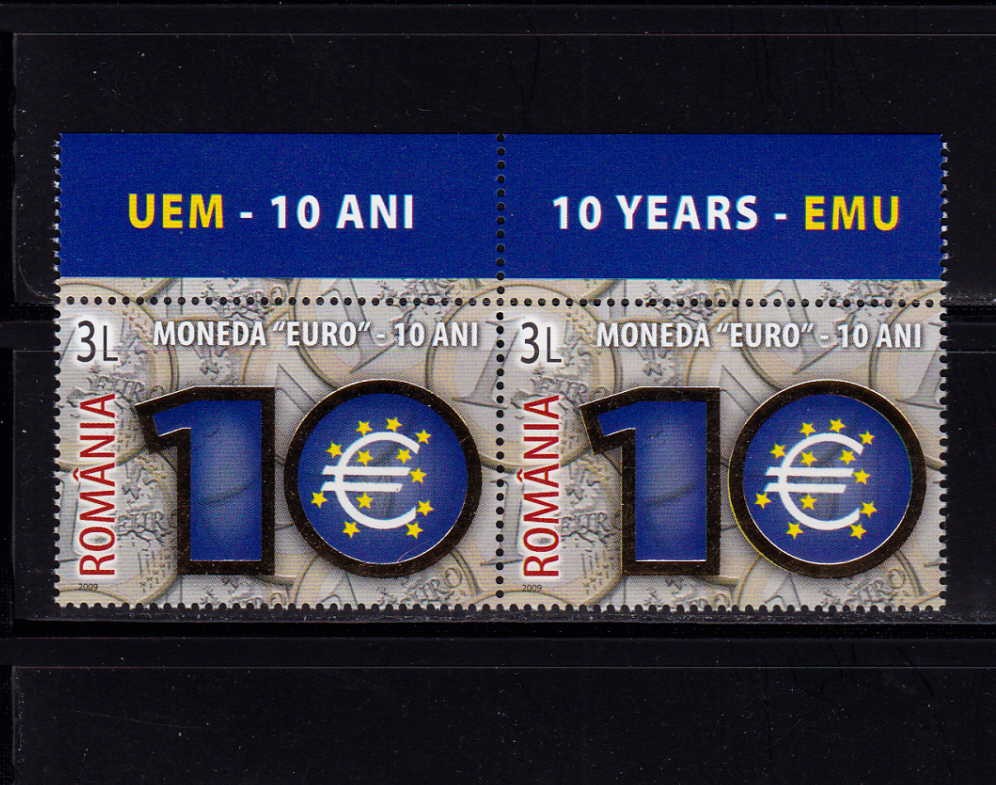 RO 2009 LP 1825 "10 ani moneda EURO" , serie pereche H+ dif. tabs ,MNH