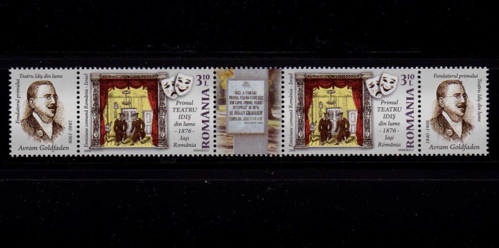 ✅RO 2009 LP 1852 "Primul Teatru Idis -", 2 marci in oglinda+vinieta centru , MNH