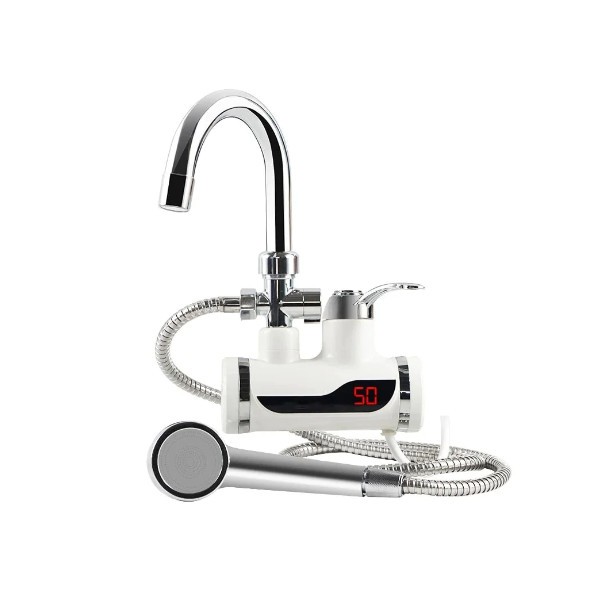 Robinet Electric Cu Dus , Pentru Incalzit Apa Instant, Cu Afisaj LED Al Temperaturii, Montare Pe Perete, Putere 3000W, Alb