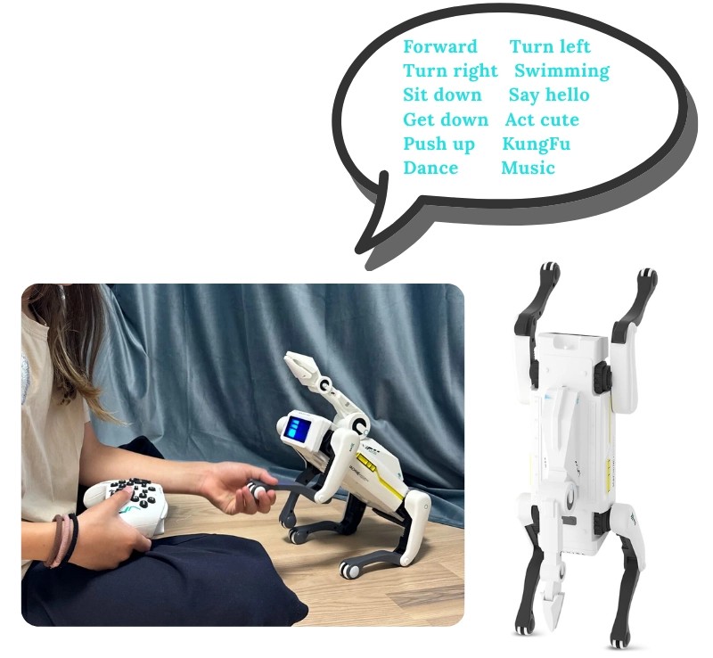 Proiectat sa imite comportamentul unui caine real, acest robot poate efectua o gama larga de actiuni - sa faca flotari, sa atace in stil de lupta kung-fu, sa patruleze zona sau chiar sa danseze si sa redea muzica, oferind nu doar divertisment, ci si o componenta educativa.