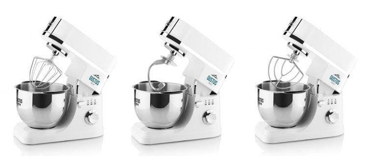ETA Gustus IV este echipat cu trei tipuri de teluri care va usureaza foarte mult munca in bucatarie. Carligul de framantare este grozav pentru prepararea aluaturilor tari in timp ce telul de amestecare se poate ocupa de celelalte tipuri de aluat. Cu telul de batut obtineti creme fine si frisca pufoasa.