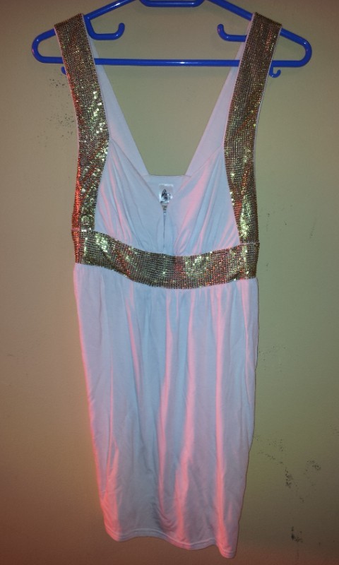 Rochie alba scurta, usor folosita, XS, fermuar lateral, fara maneci.