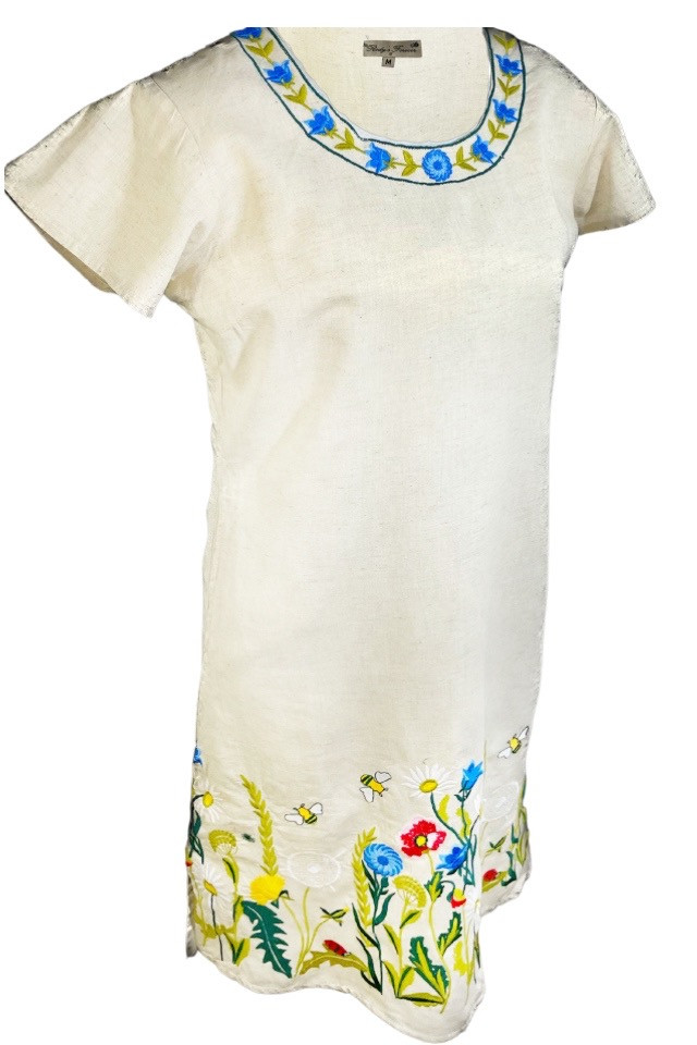 Aceasta superba rochie care imbina perfect traditia cu noul, un liant perfect intre motivele traditionale transpuse pe un material atat de modern.