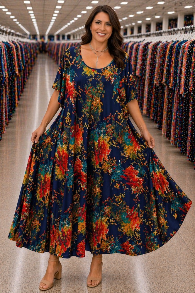 Rochie peste genunchi cu imprimeuri vibrante. Are decolteu pe rotund croi clos. Rochie peste genunchi lungime 120 cm Decolteu normal Maneci scurte Croi clos Fara captuseala Fara inchidere Material: Viscoza Compozitie: 30% Viscoza, 30% Poliamida, 20% Bumbac, 15% Poliester, 5% Elastan *Va rugam verificati eticheta produsului inainte de curatare! *Va rugam sa retineti ca o usoara discrepanta de culoare ar trebui sa fie acceptabila datorita luminii si luminozitatii ecranului. *Marimea este Universala , se incadreaza de la marimea 44 pana la marimea 60 EU.