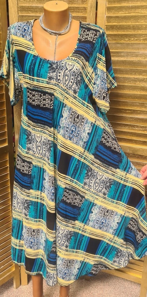 Rochie peste genunchi cu imprimeuri vibrante. Are decolteu pe rotund croi clos. Rochie peste genunchi lungime 120 cmDecolteu normalManeci scurteCroi closFara captusealaFara inchidereMaterial: ViscozaCompozitie: 30% Viscoza, 30% Poliamida, 20% Bumbac, 15% Poliester, 5% Elastan*Va rugam verificati eticheta produsului inainte de curatare!*Va rugam sa retineti ca o usoara discrepanta de culoare ar trebui sa fie acceptabila datorita luminii si luminozitatii ecranului. *Marimea este Universala , se incadreaza de la marimea 44 pana la marimea 60 EU.