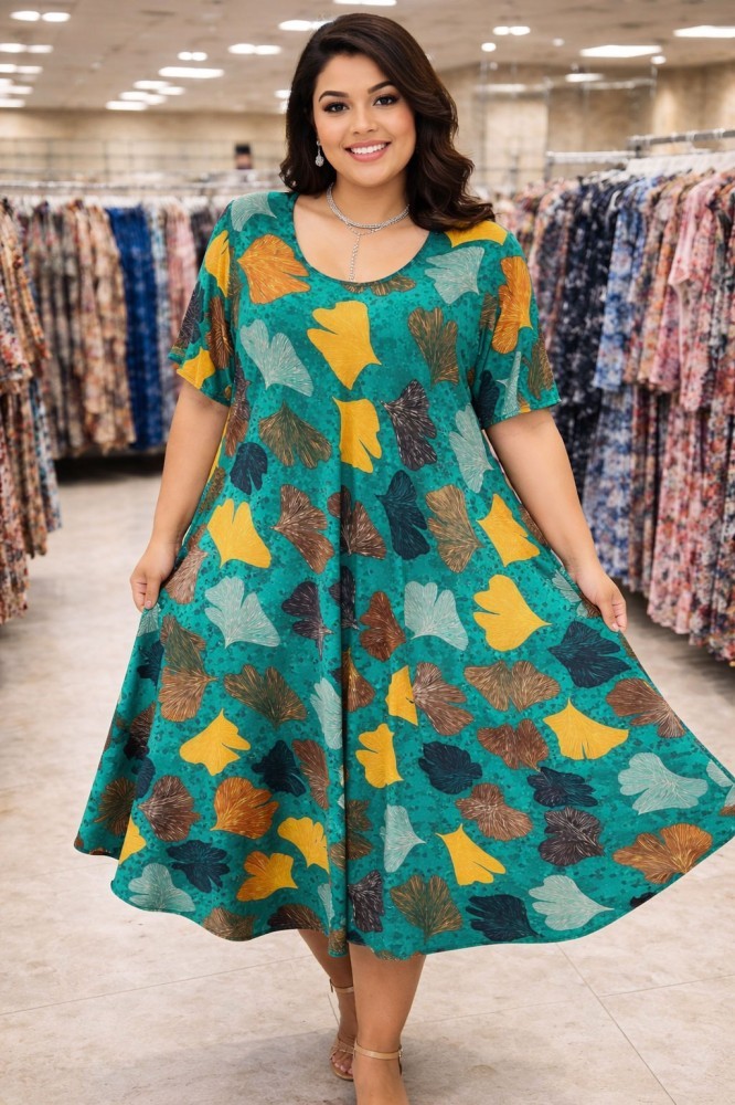 Rochie peste genunchi cu imprimeuri vibrante. Are decolteu pe rotund croi clos. Rochie peste genunchi lungime 120 cm Decolteu normal Maneci scurte Croi clos Fara captuseala Fara inchidere Material: Viscoza Compozitie: 30% Viscoza, 30% Poliamida, 20% Bumbac, 15% Poliester, 5% Elastan *Va rugam verificati eticheta produsului inainte de curatare! *Va rugam sa retineti ca o usoara discrepanta de culoare ar trebui sa fie acceptabila datorita luminii si luminozitatii ecranului. *Marimea este Universala , se incadreaza de la marimea 44 pana la marimea 60 EU.