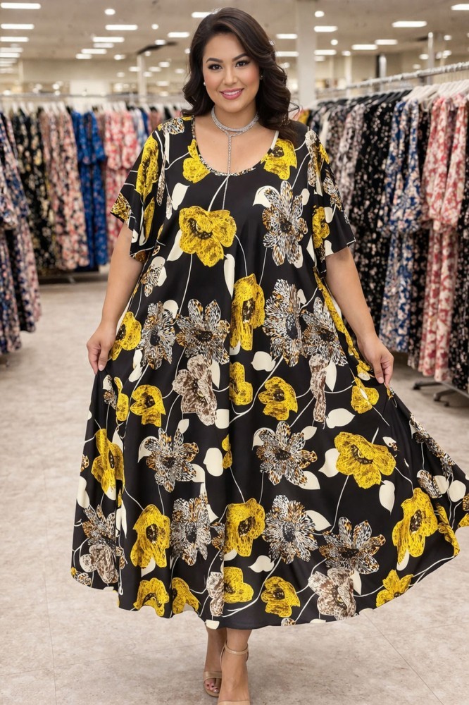 Rochie peste genunchi cu imprimeuri vibrante. Are decolteu pe rotund croi clos. Rochie peste genunchi lungime 120 cm Decolteu normal Maneci scurte Croi clos Fara captuseala Fara inchidere Material: Viscoza Compozitie: 30% Viscoza, 30% Poliamida, 20% Bumbac, 15% Poliester, 5% Elastan *Va rugam verificati eticheta produsului inainte de curatare! *Va rugam sa retineti ca o usoara discrepanta de culoare ar trebui sa fie acceptabila datorita luminii si luminozitatii ecranului. *Marimea este Universala , se incadreaza de la marimea 44 pana la marimea 60 EU.