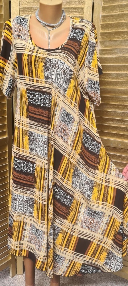 Rochie peste genunchi cu imprimeuri vibrante. Are decolteu pe rotund croi clos. Rochie peste genunchi lungime 120 cmDecolteu normalManeci scurteCroi closFara captusealaFara inchidereMaterial: ViscozaCompozitie: 30% Viscoza, 30% Poliamida, 20% Bumbac, 15% Poliester, 5% Elastan*Va rugam verificati eticheta produsului inainte de curatare!*Va rugam sa retineti ca o usoara discrepanta de culoare ar trebui sa fie acceptabila datorita luminii si luminozitatii ecranului. *Marimea este Universala , se incadreaza de la marimea 44 pana la marimea 60 EU.