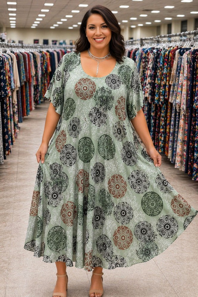 Rochie peste genunchi cu imprimeuri vibrante. Are decolteu pe rotund croi clos. Rochie peste genunchi lungime 120 cm Decolteu normal Maneci scurte Croi clos Fara captuseala Fara inchidere Material: Viscoza Compozitie: 30% Viscoza, 30% Poliamida, 20% Bumbac, 15% Poliester, 5% Elastan *Va rugam verificati eticheta produsului inainte de curatare! *Va rugam sa retineti ca o usoara discrepanta de culoare ar trebui sa fie acceptabila datorita luminii si luminozitatii ecranului. *Marimea este Universala , se incadreaza de la marimea 44 pana la marimea 60 EU.